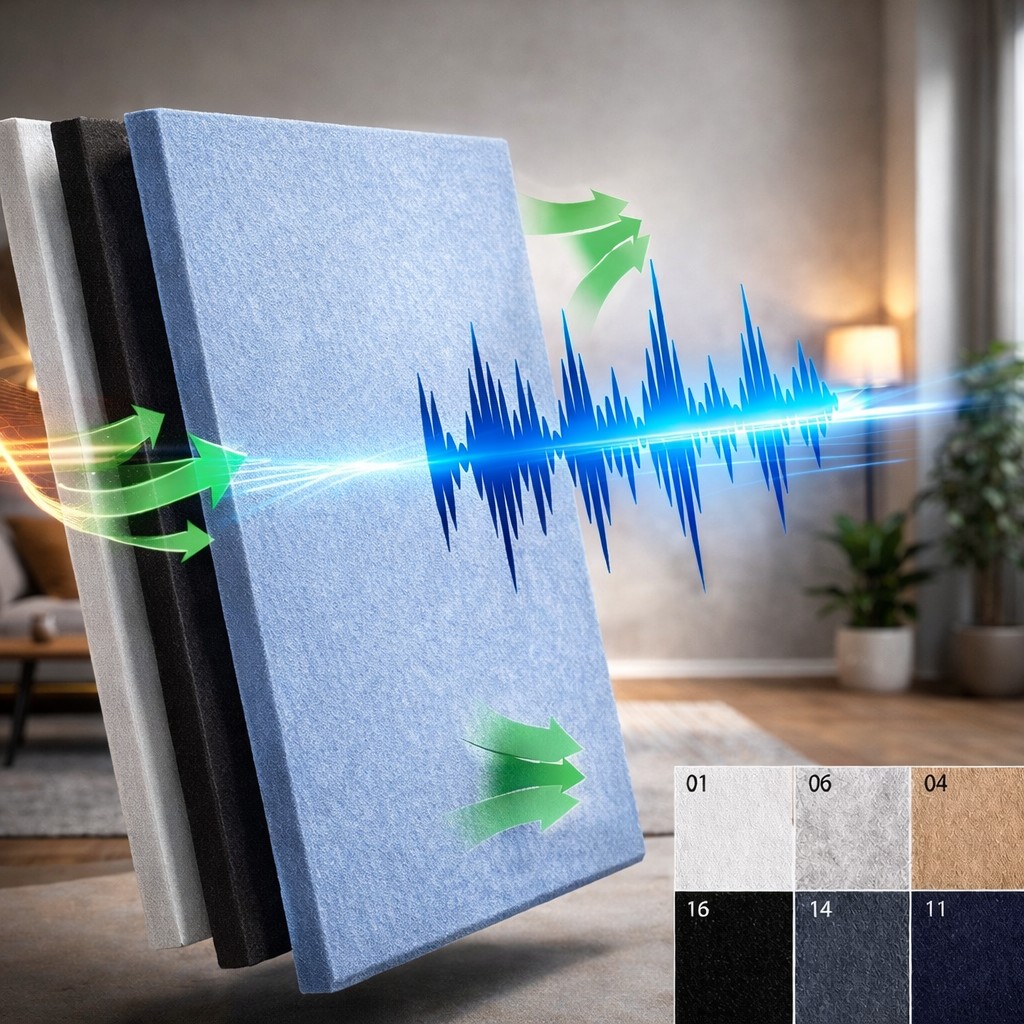 Con un grosor de 12 mm y una densidad de 1700 g/m², este panel acústico decorativo garantiza una absorción sonora superior, reduciendo eficazmente la contaminación acústica y la reverberación.