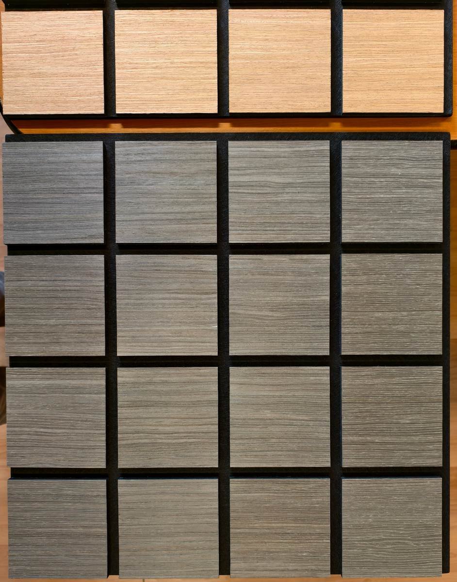 Freja panel acústico de pared de madera con patrón cuadriculado – 60x60cm – grey oak