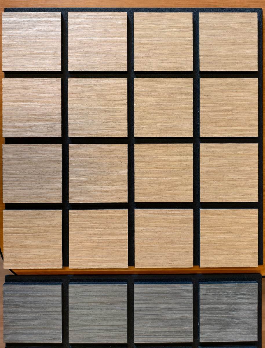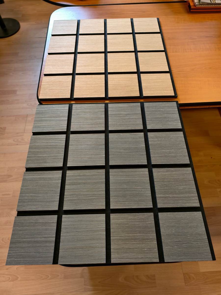 El panel acústico de pared Freja con patrón cuadriculado combina una estética elegante con un excelente rendimiento acústico, siendo ideal para cualquier espacio donde la comodidad sonora y el diseño moderno son fundamentales. Este panel de alta gama está fabricado con una base de fieltro grueso y una capa superior de MDF con veta de roble natural, lo que aporta un toque distintivo y sofisticado a cualquier estancia.