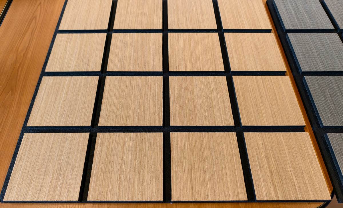 Nombre del producto: Freja panel acústico de pared de madera con patrón cuadriculado