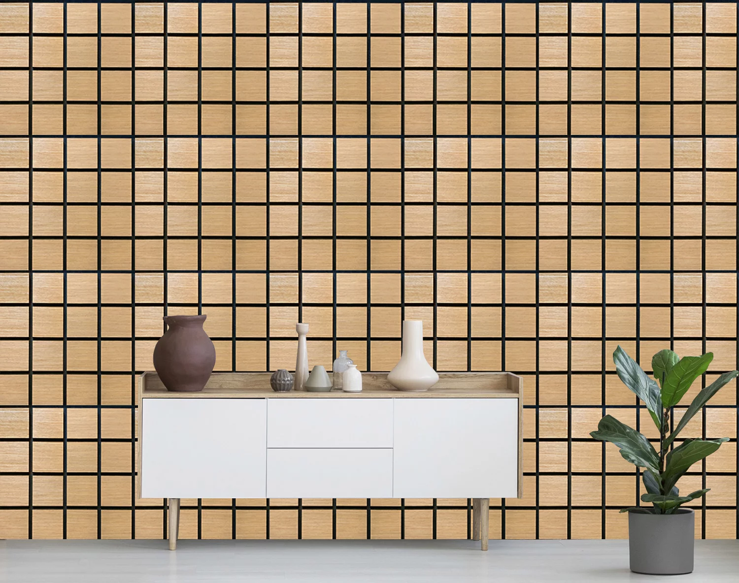 Freja panel acústico de pared de madera con patrón cuadriculado