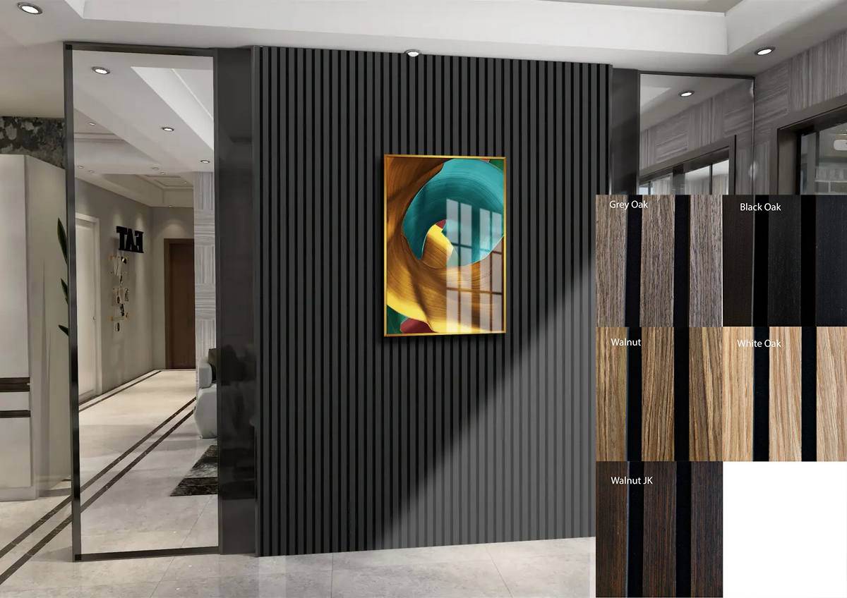 Las láminas de madera se montan sobre una capa de fieltro de alta densidad, proporcionando capacidades excepcionales de absorción de sonido. Así, el panel acústico no es solo un elemento de diseño impactante, sino que también sirve como un eficaz absorbente de sonido, mejorando la acústica de la sala. Es la elección perfecta para hogares, oficinas o estudios de alta demanda donde la calidad del sonido y el estilo son cruciales.