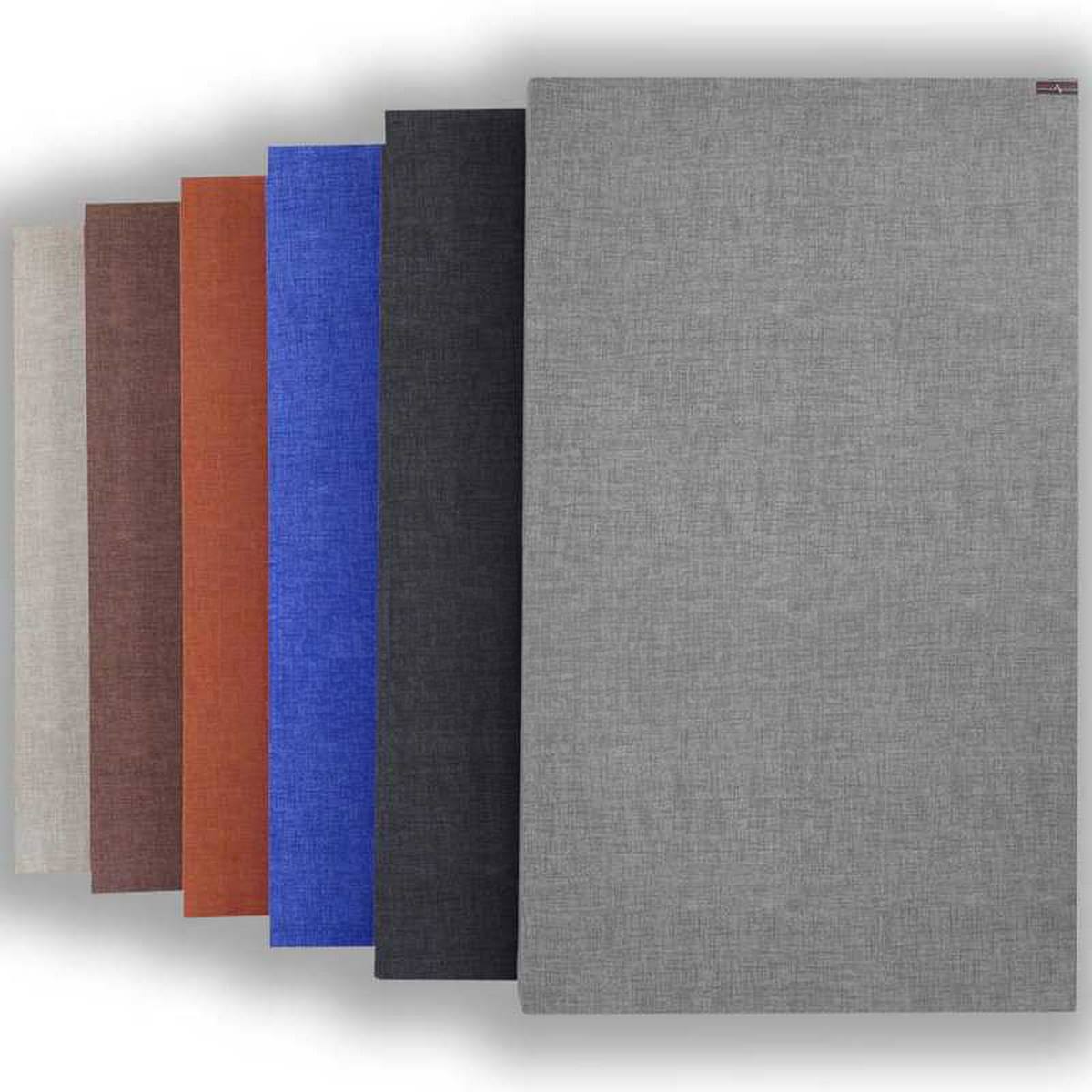 Incorporamos lana acústica en un marco de madera de 2 cm de grosor. Gracias a esto, los paneles serán extremadamente estables una vez instalados. Cada panel está recubierto con una acústica seda microgranulada, de la cual ofrecemos hasta 15 colores diferentes.